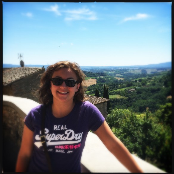 Today we rented a car to tour the Tuscan countryside and wine region. It was nice to get away from the throngs of people! Again, like in France we were a little nervous about driving, but we figured we made the reservation, we have to do it! It was great! It was much easier getting out of Florence than Paris. We were at our first stop of San Gimignano within 45 min. A really cool hill top medieval town with gorgeous vineyard views.