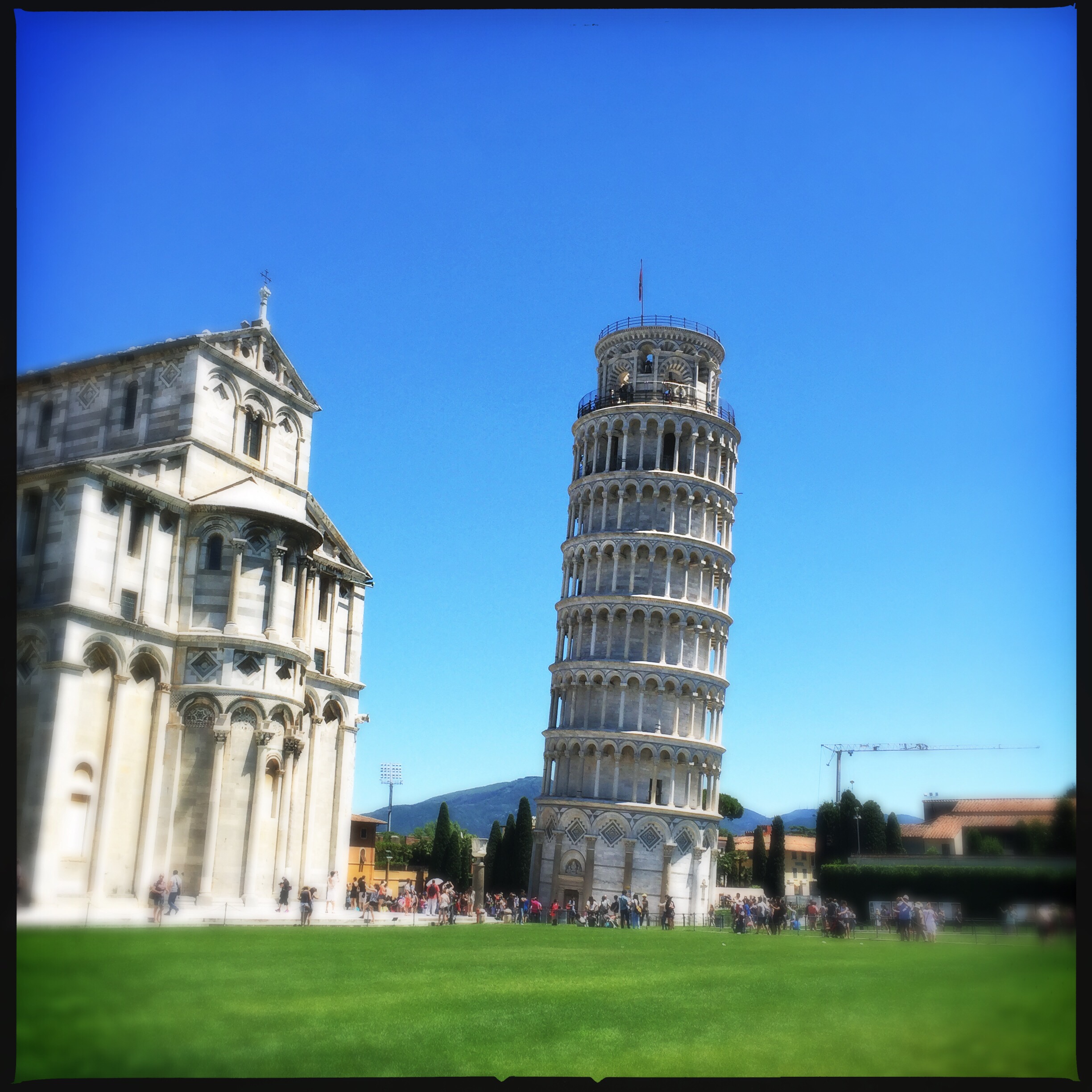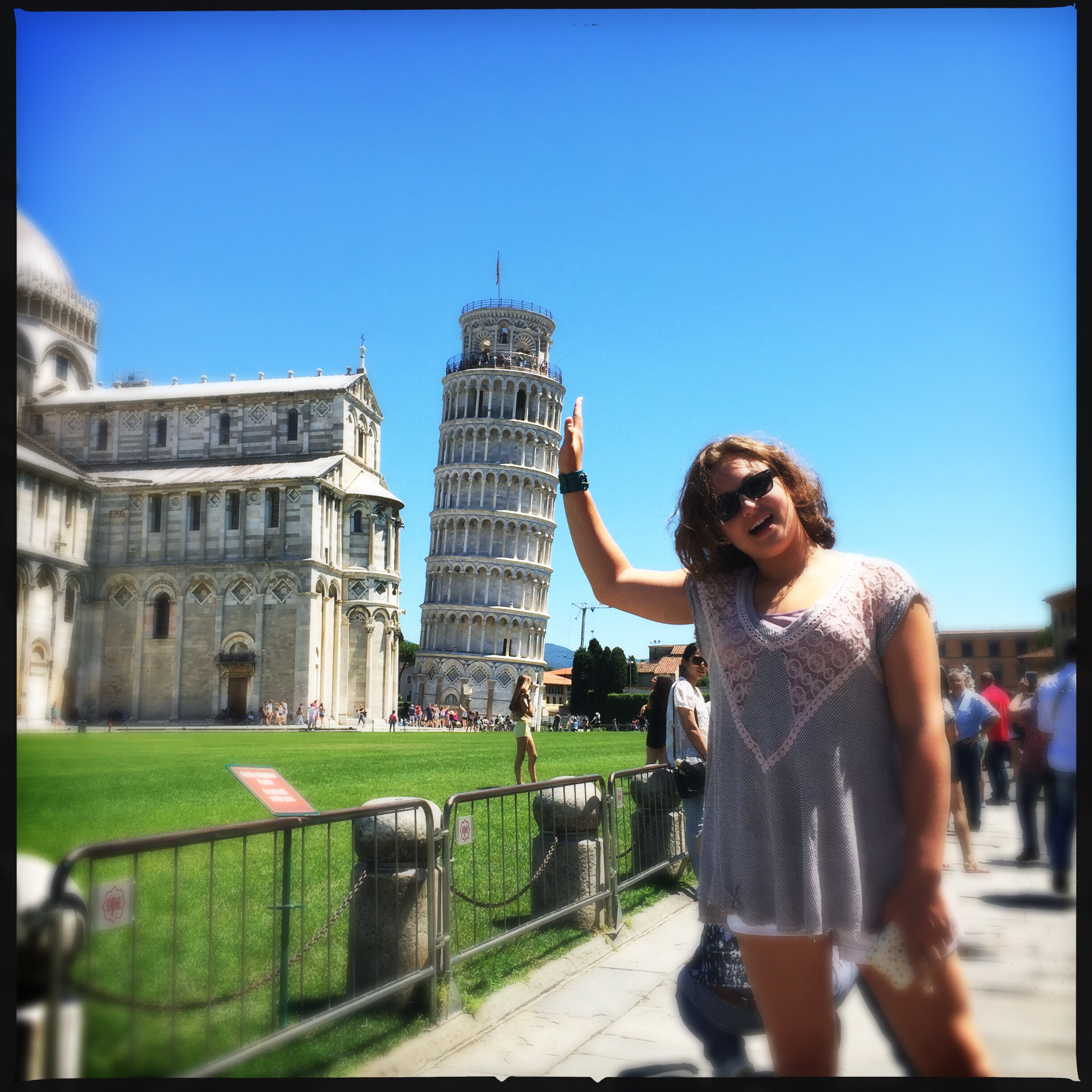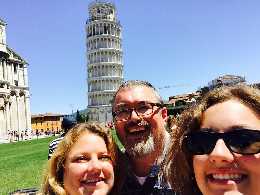 But first, on the way to Florence we stopped for about an hour in Pisa. We heard from our apartment contact in the Cinque Terre that the tower was about the only thing to see in Pisa. So we trained it to Pisa, then bused it over to the tower. Quick bucket list side trip. It was cool.